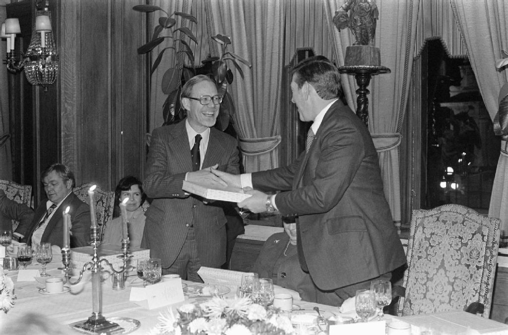 Dîner offert par le ministre de l'Éducation Jacques-Yvan Morin aux ministres de l'Éducation du Canada, 1980-01-24, Archives nationales à Québec, Fonds Ministère des Communications, (03Q,E10,S44,SS1,D80-35), Bernard Vallée.