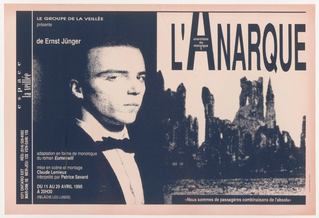 Le Groupe de la veillée présente L'arnaque, anarchiste ou monarque? De Ernst Jünger... mise en scène et montage Claude Lemieux