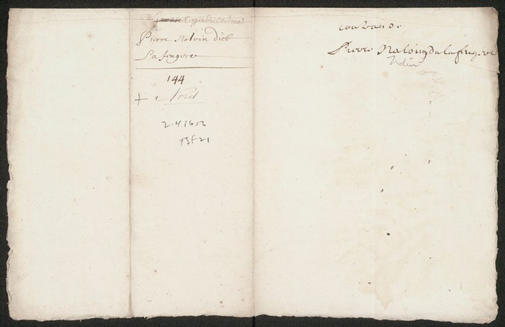 Acte de concession de Charles de Lauzon, chevalier, seigneur de Charny, grand-maître des eaux et forêts en la Nouvelle-France, à Pierre Nolin dit Lafougère du nombre de quatre arpents de terre de front à prendre dans l'île d'Orléans, en la seigneurie de Lirec, tenant d'un côté à Simon Lerreau et d'autre à René Mézéré dit Nopce, 2 avril 1656, Archives nationales à Québec, Collection Seigneuries, (03Q,P240,D317,P8).