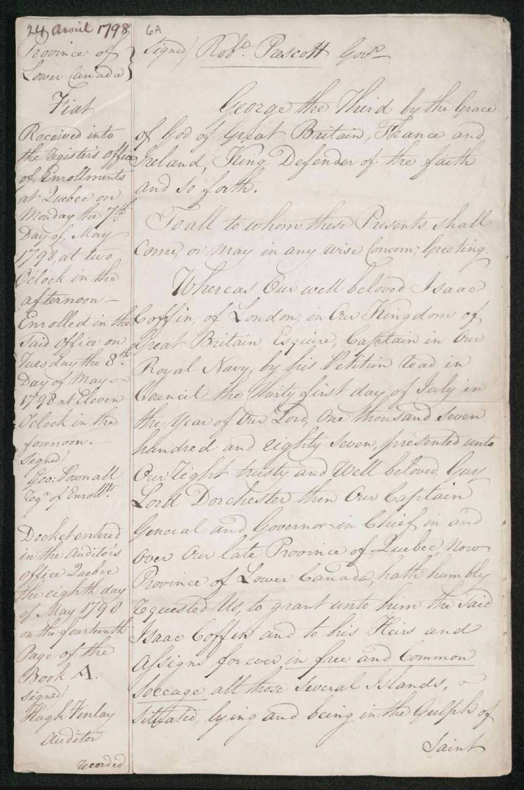 Lettres patentes en faveur d'Isaac Coffin