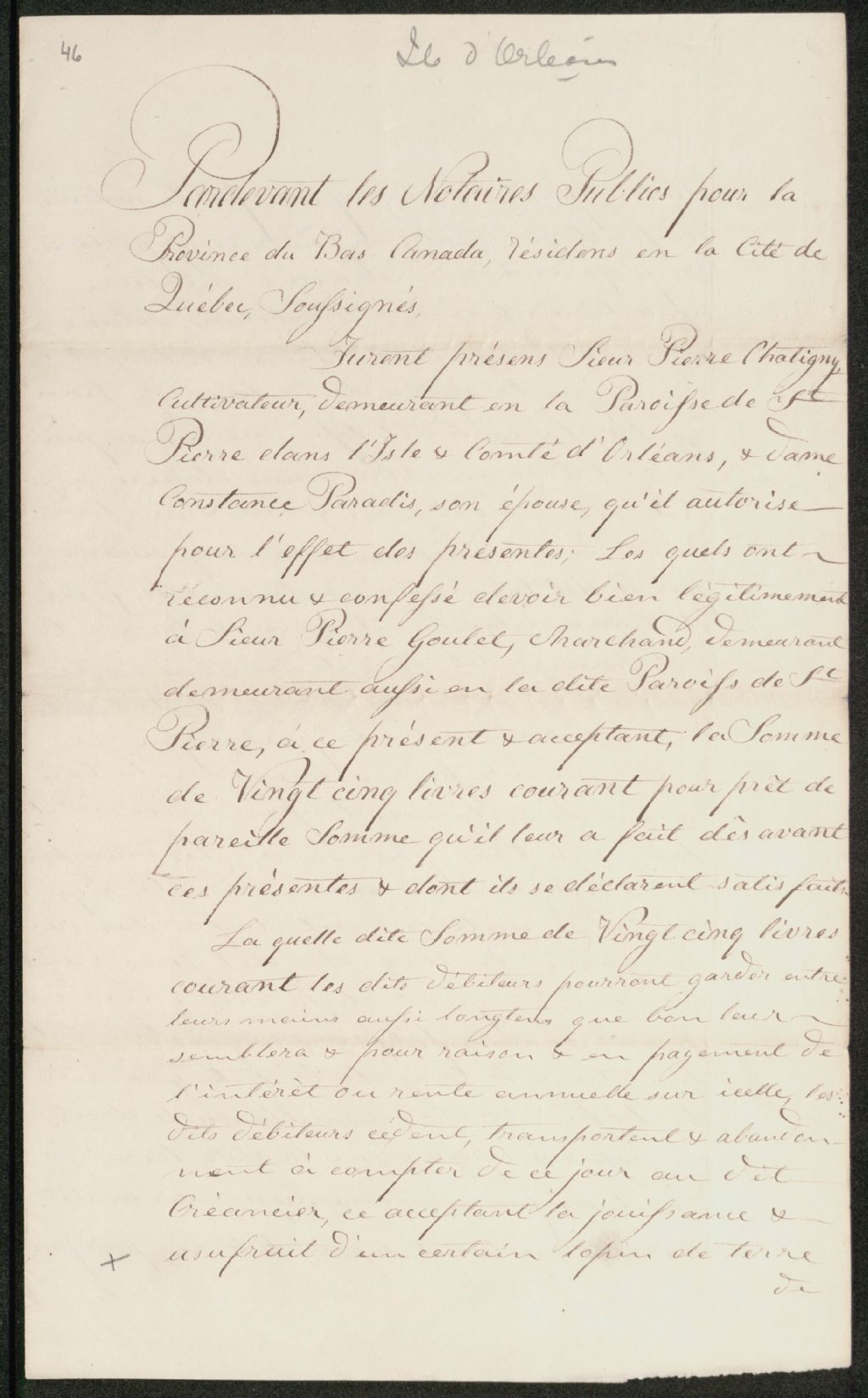 - Obligation par Pierre Chatigny et Constance Paradis à Pierre Goulet