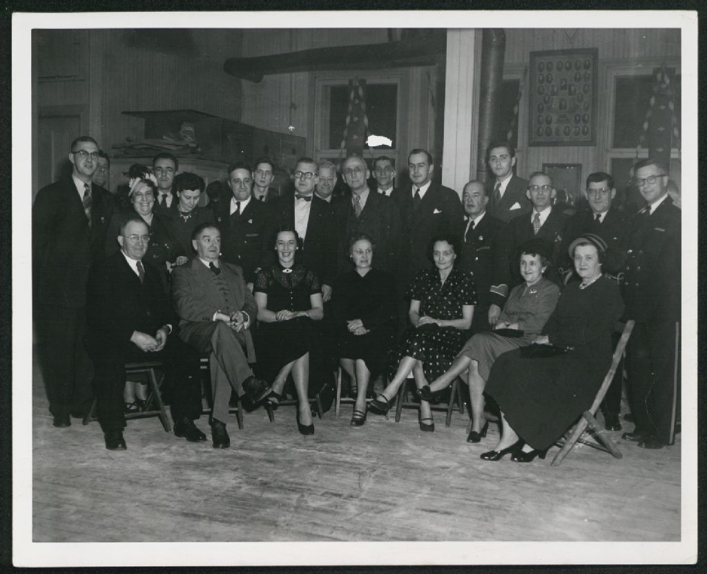 Portrait de groupe en compagnie du premier ministre Maurice Duplessis, [Vers 1949], Archives nationales à Trois-Rivières, Fonds Union musicale des Trois-Rivières, (04T,P47,S1,P38), Photographe non identifié.