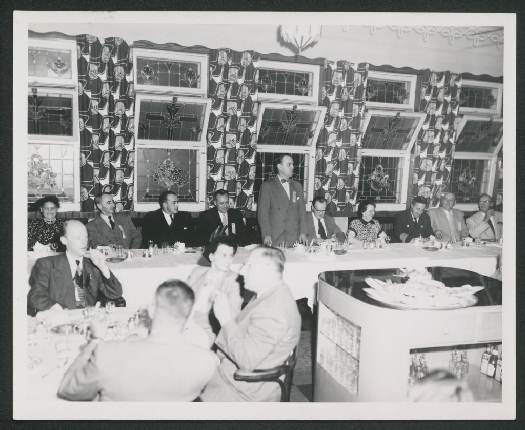 - En visite à Trois-Rivières, la chorale franco-américaine de Lowell (Massachusetts) a donné un concert au kiosque du Parc Champlain conjointement avec l'Union Musicale des Trois-Rivières. Puis, une réception officielle pour la Chorale a eu lieu à l'Hôtel Saint-Maurice.Parmi les personnes photographiées à cette réception, il y a : Léo Carle, Médéric Dufresne (échevin de Trois-Rivières), le député fédéral Léon Balcer, le maire de Trois-Rivières J. A. Mongrain prononçant un discours, Jean-Louis Baribeau (conseiller législatif de Shawinigan et président du Conseil législatif du Québec), Paul Champagne de l'Union musicale de Trois-Rivières et Antonio Gauthier (propriétaire de la quincaillerie P.A. Gouin).