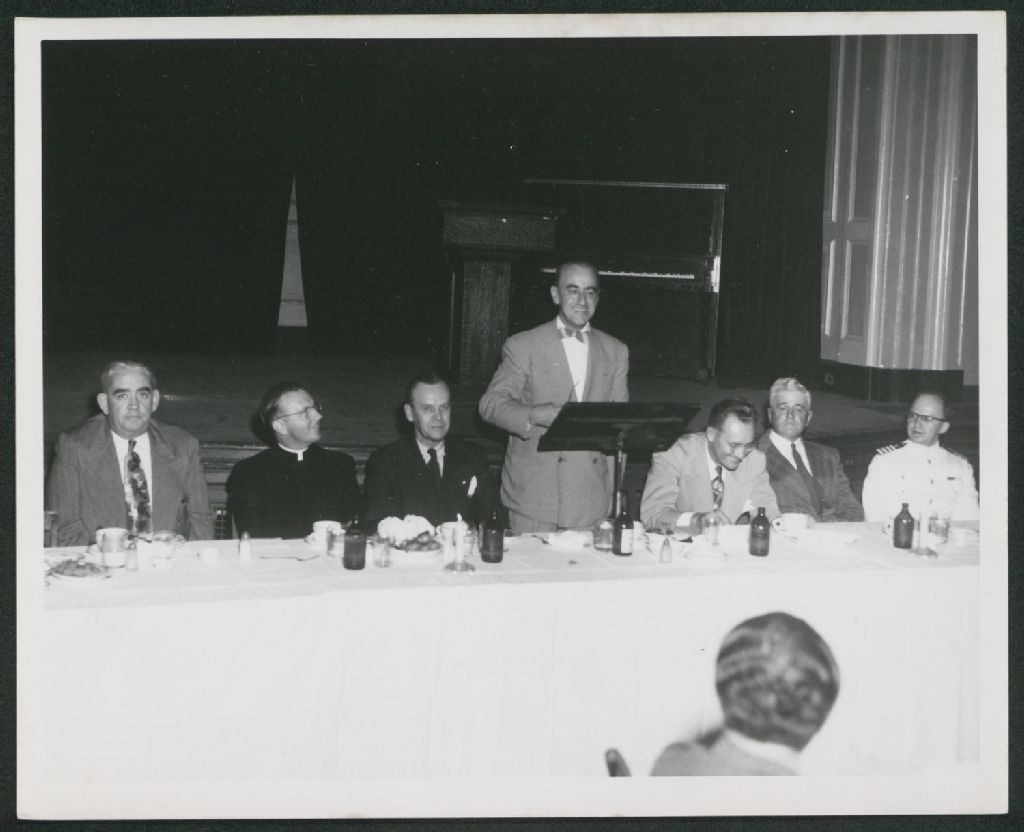 Discours lors d'une réception, [195-?], Archives nationales à Trois-Rivières, Fonds Union musicale des Trois-Rivières, (04T,P47,S1,P51), Photographe non identifié.