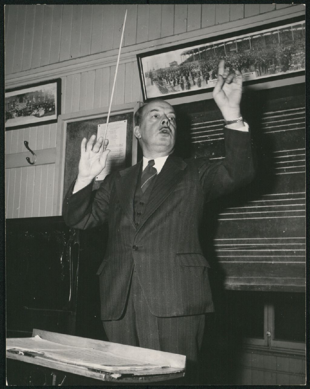 Portrait de René Gagnier, directeur musical de l'Union musicale des Trois-Rivières, [194-?], Archives nationales à Trois-Rivières, Fonds Union musicale des Trois-Rivières, (04T,P47,S1,P85), Photographe non identifié.