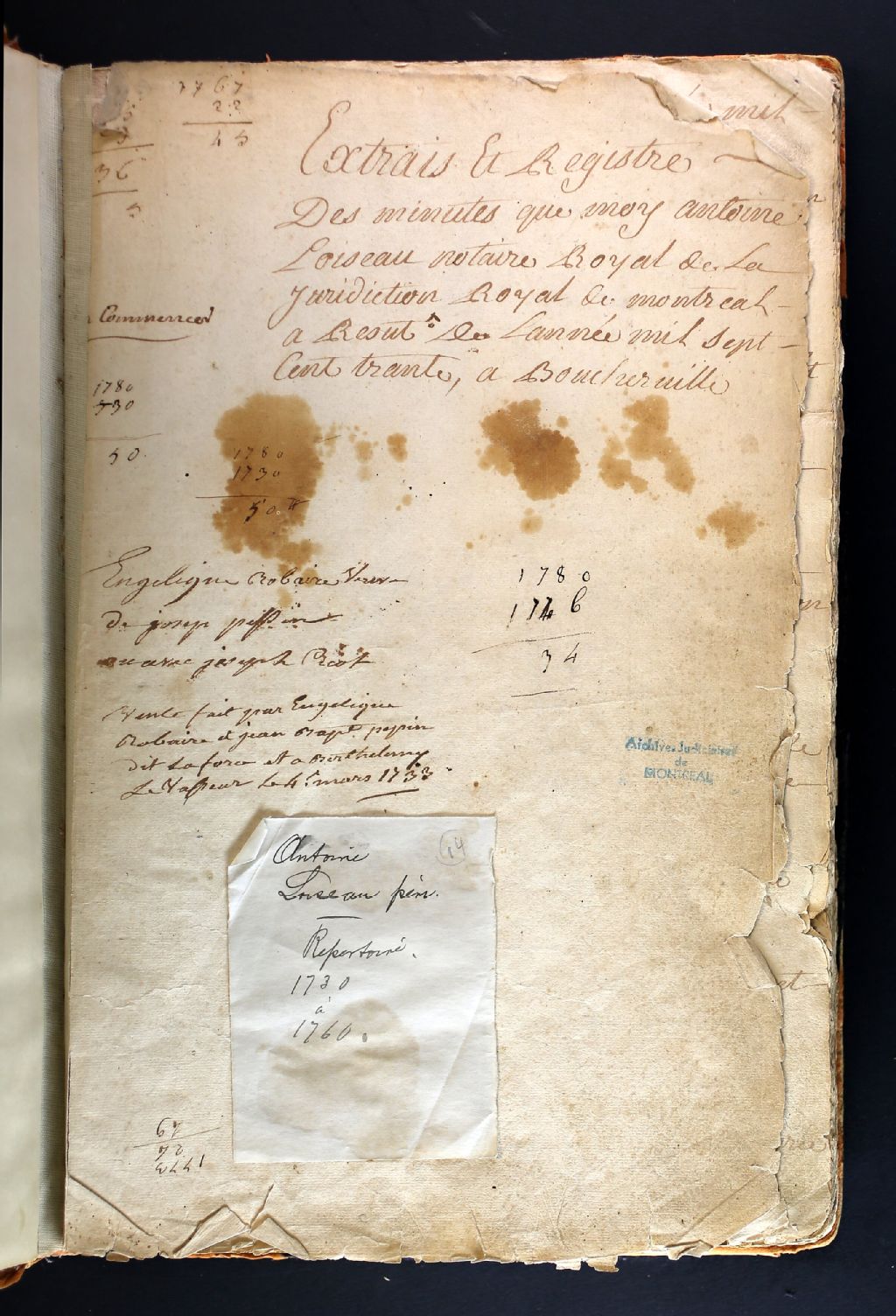 Antoine Loiseau dit Châlons, 1730-1760, Archives nationales à Montréal, Fonds Cour supérieure. District judiciaire de Montréal. Greffes de notaires, (06M,CN601,S266).