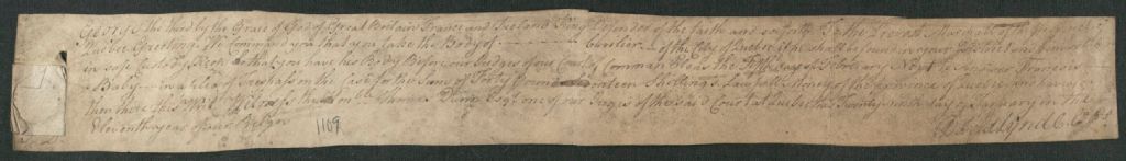 - Ce dossier en matières civiles provient de la Cour des plaidoyers communs. Il comprend une requête de François Baby (Babie) réclamant une somme de 408 shillings et 10 sols de la province de Québec pour des marchandises vendues au nommé Cuvillier ; une ordonnance pour la constitution d'un jury de douze hommes dans le procès entre François Baby (Babie) et le nommé Cuvillier ; une liste de dix-huit noms de jurés potentiels, avec identification de ceux ayant vraisemblablement été choisis ; un mandat d'arrestation contre le nommé Cuvillier; une déclaration de huissier à l'effet que ledit Cuvillier demeure introuvable ; une déclaration assermentée de A. Mabane à l'effet qu'il est en possession d'une somme de 251 shillings courants appartenant au nommé Cuvilier (Cuvillier) ; et un compte détaillé des marchandises vendues et livrées au sieur Cuvilier (Cuvillier) par François Baby (Babie)