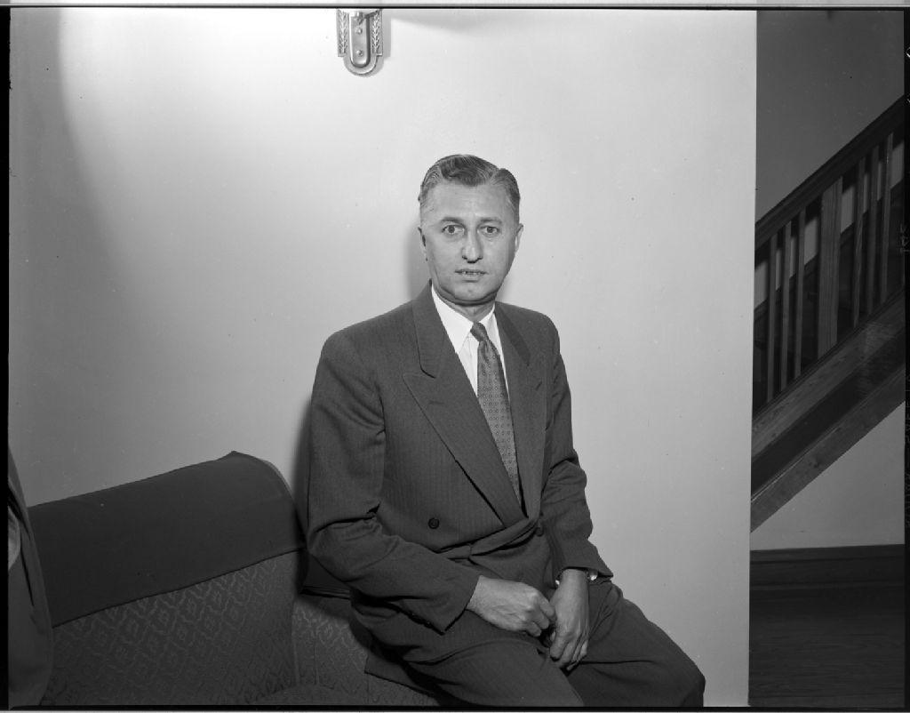 D. Morais, président de l'Institut canadien-français d'Ottawa, 26 septembre 1954, Archives nationales à Gatineau, Fonds Champlain Marcil, (07H,P174,S1,D3910), Attribuée à Champlain Marcil.