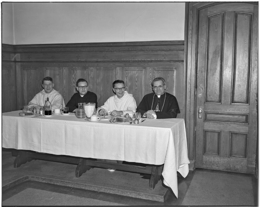 Visite du Cardinal Paul-Émile Léger chez les Dominicaines-de-la-Trinité à Hull, 15 octobre 1953, Archives nationales à Gatineau, Fonds Champlain Marcil, (07H,P174,S1,D2160), Attribuée à Champlain Marcil.