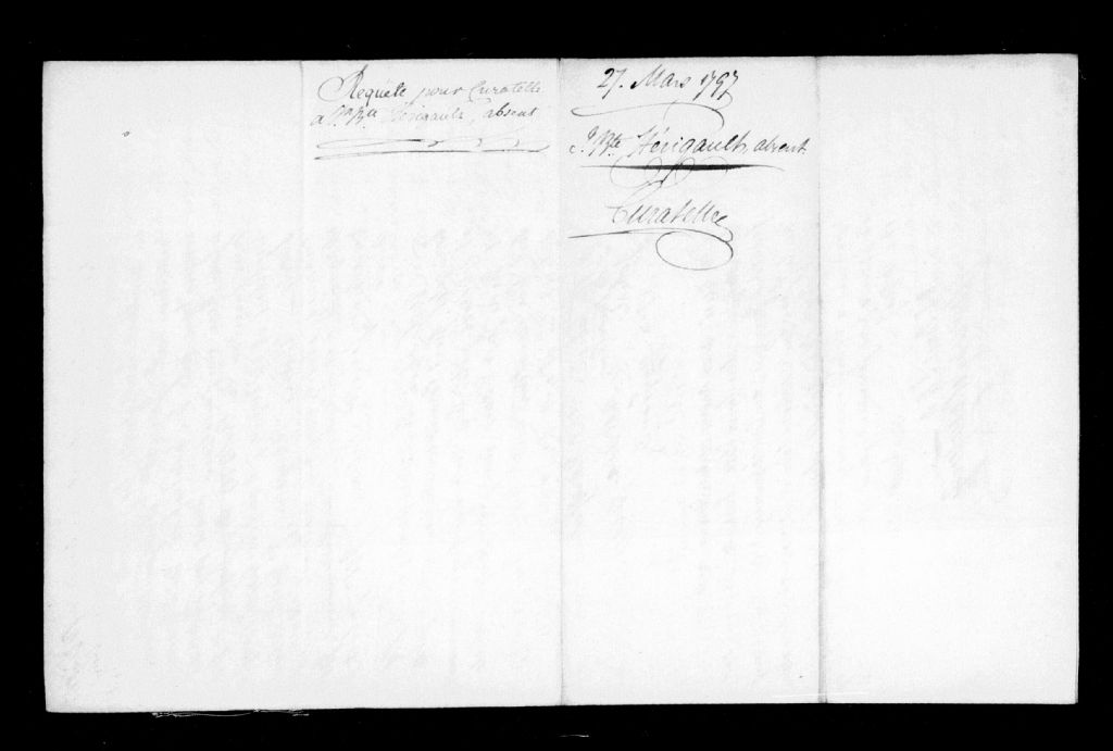 Curatelle de Jean Baptiste Hérigault, chirurgien, absent de la province, 25 mars 1797-27 mars 1797, Archives nationales à Montréal, Fonds Cour supérieure. District judiciaire de Montréal. Tutelles et curatelles, (06M,CC601,S1,SS2,D1390).