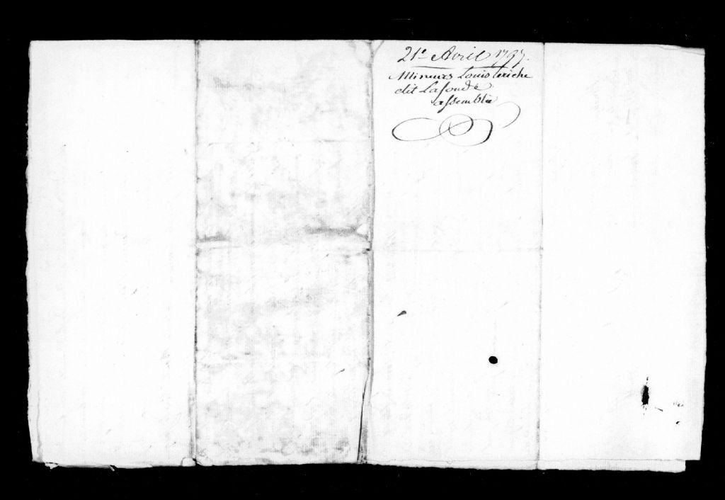 Tutelle de(s) enfant(s) mineur(s) de défunt Louis Leriche dit Lasonde et de Pauline Luissier [Apolline Lussier] - Administration tutélaire, 9 mars 1797-21 avril 1797, Archives nationales à Montréal, Fonds Cour supérieure. District judiciaire de Montréal. Tutelles et curatelles, (06M,CC601,S1,SS2,D1403).