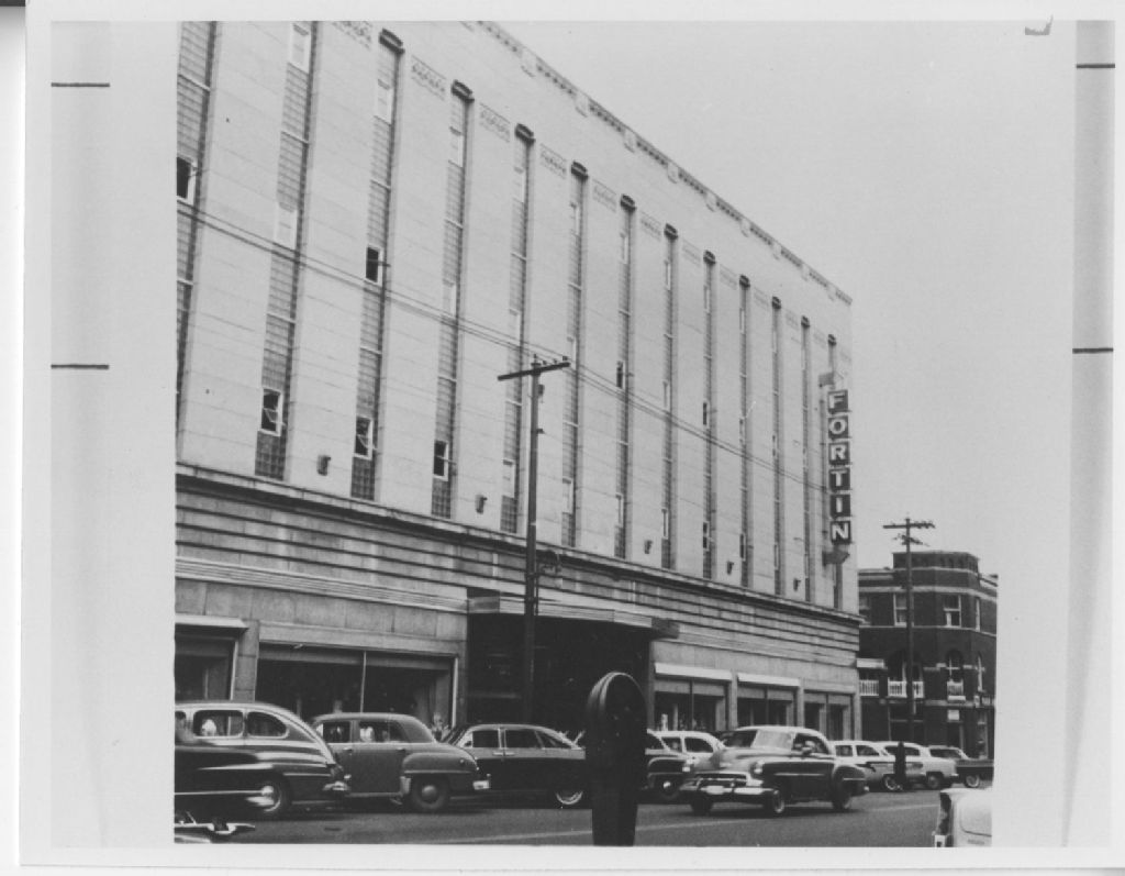 Vue extérieure de l'édifice Fortin sur la rue Notre-Dame, [195-], Archives nationales à Trois-Rivières, Fonds Joseph-Louis Fortin, (04T,P71,D8), Fortin, Joseph-Louis.