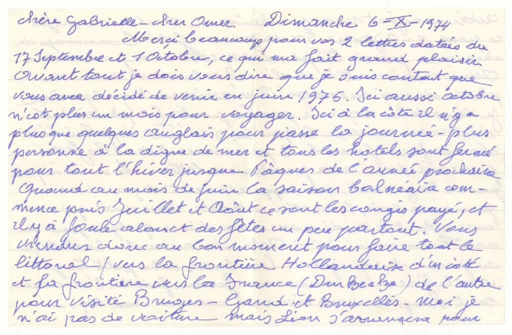Lette de Charles de Bruyne, 6 octobre 1974, Archives nationales à Rimouski, Fonds Gabrielle Pellerin, (01R,P29,D675,P1).