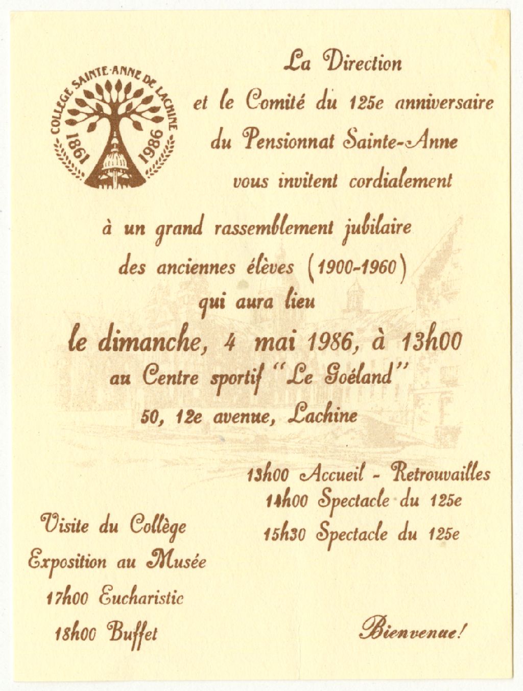 Invitation au rassemblement des anciens élèves du collège Sainte-Anne de Lachine