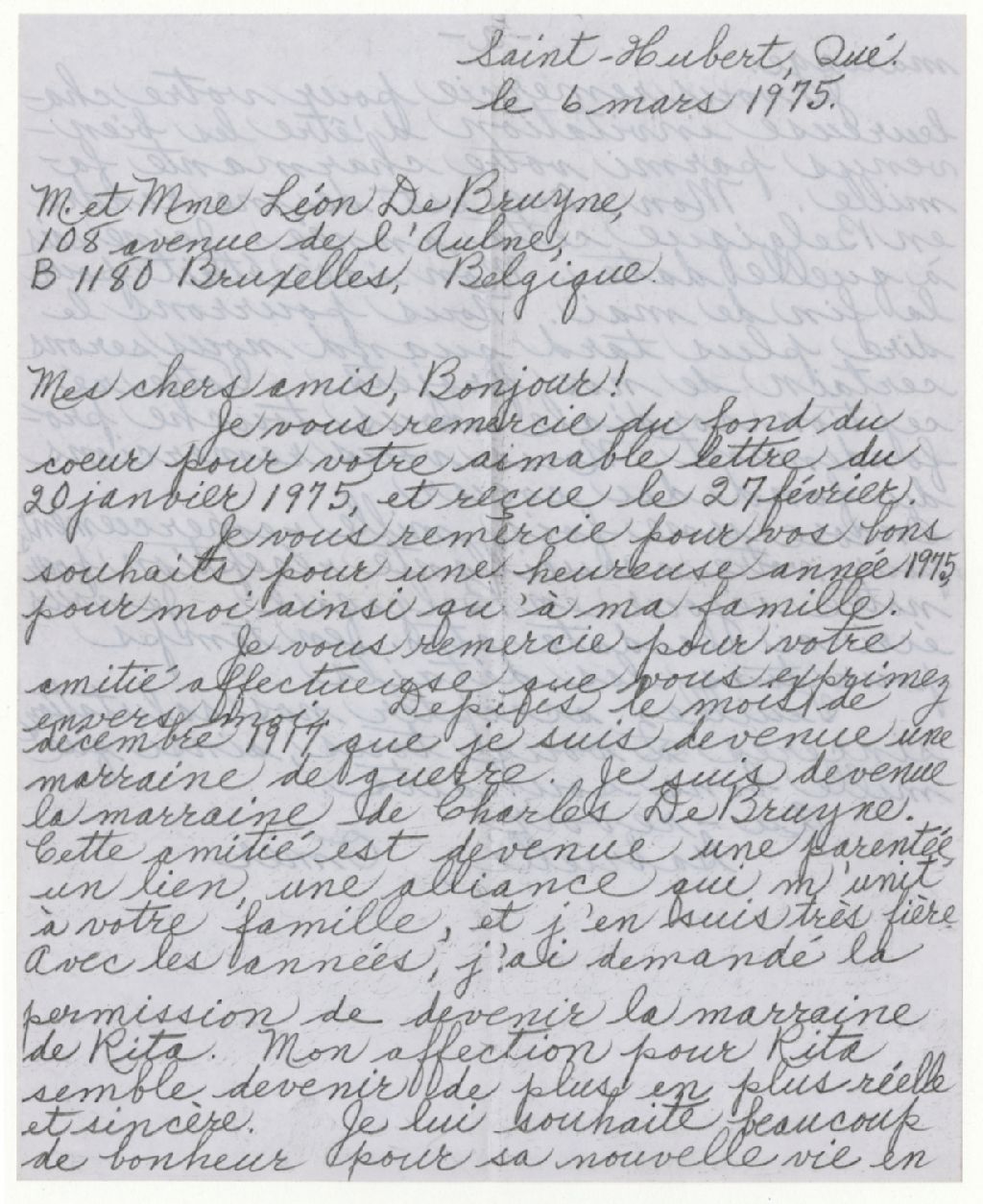 Lettre d'Omer et Gabrielle Ratté (Pellerin), 6 mars 1975, Archives nationales à Rimouski, Fonds Gabrielle Pellerin, (01R,P29,D680,P2).