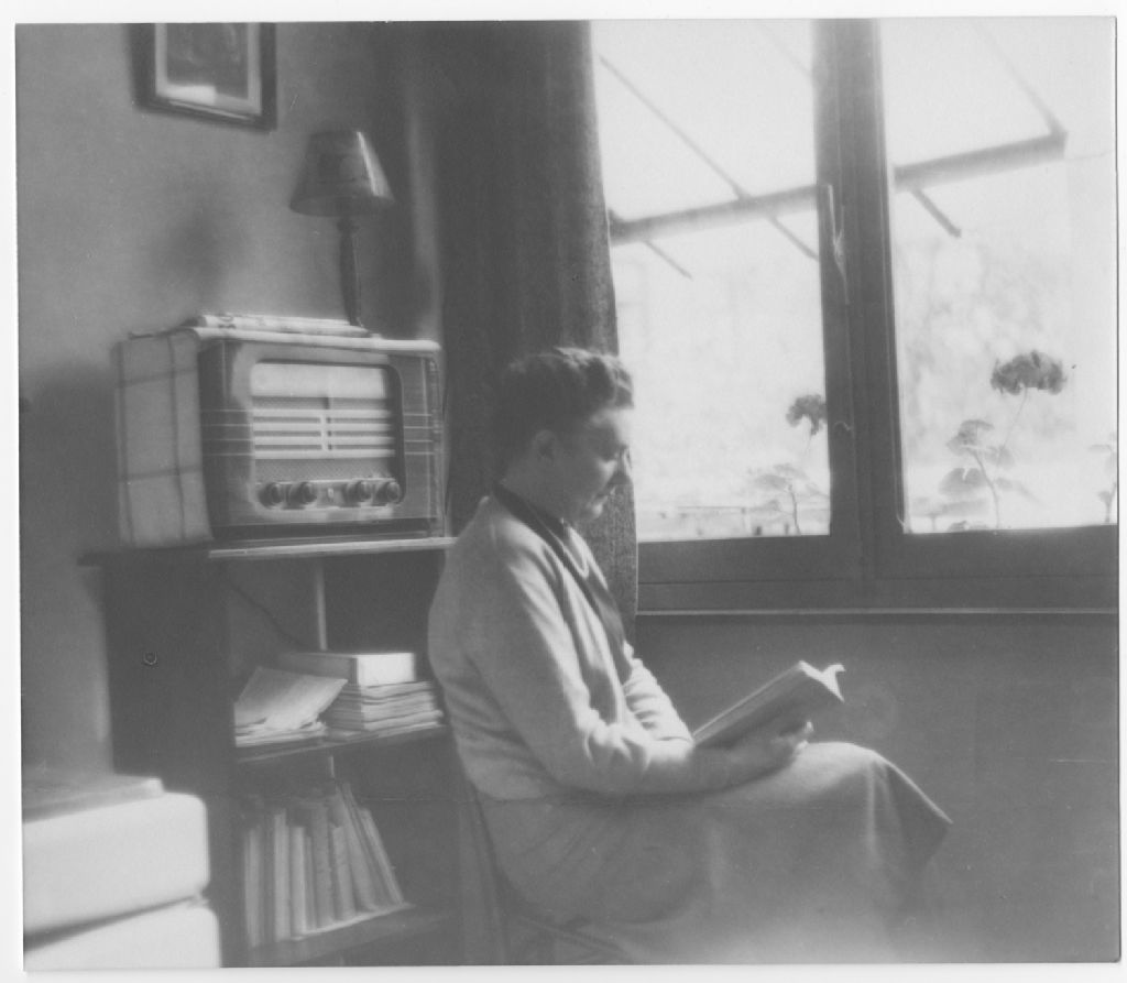 La photographie a été prise dans le salon de leur maison de Saint-André-les-Bruges. On y aperçoit Antoinette de Bruyne en train de lire et une radio en arrière