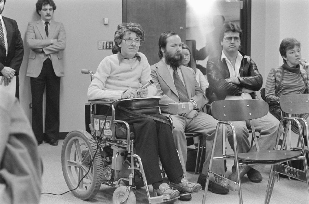 Conférence de presse de François Gendron, Ministre de la Fonction Publique et Denis Lazure, Ministre des Affaires Sociales au Centre François Charron, 1981-02-26, Archives nationales à Québec, Fonds Ministère des Communications, (03Q,E10,S44,SS1,D81-134), Bernard Vallée.