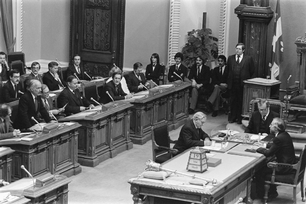 Ouverture de la session parlementaire à l'Assemblée Nationale, 1981-05, Archives nationales à Québec, Fonds Ministère des Communications, (03Q,E10,S44,SS1,D81-310), Marc Lajoie.