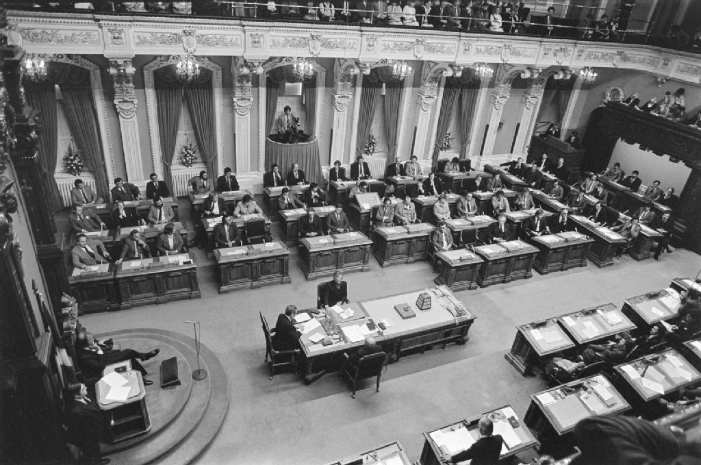 Ouverture de la session parlementaire à l'Assemblée Nationale, 1981-05, Archives nationales à Québec, Fonds Ministère des Communications, (03Q,E10,S44,SS1,D81-312), Bernard Vallée.