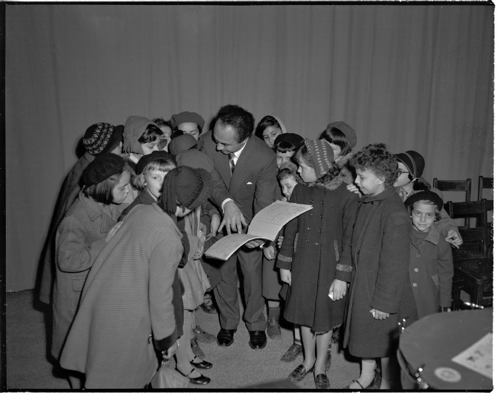 Eugène Kash à l'École Technique de Hull, 20 novembre 1954, Archives nationales à Gatineau, Fonds Champlain Marcil, (07H,P174,S1,D4322), Attribuée à Champlain Marcil.