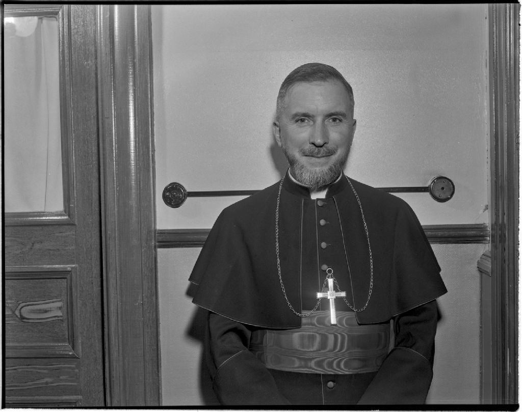 Monseigneur Lefebvre au Collège Saint-Alexandre, 21 mai 1955, Archives nationales à Gatineau, Fonds Champlain Marcil, (07H,P174,S1,D5607), Attribuée à Champlain Marcil.