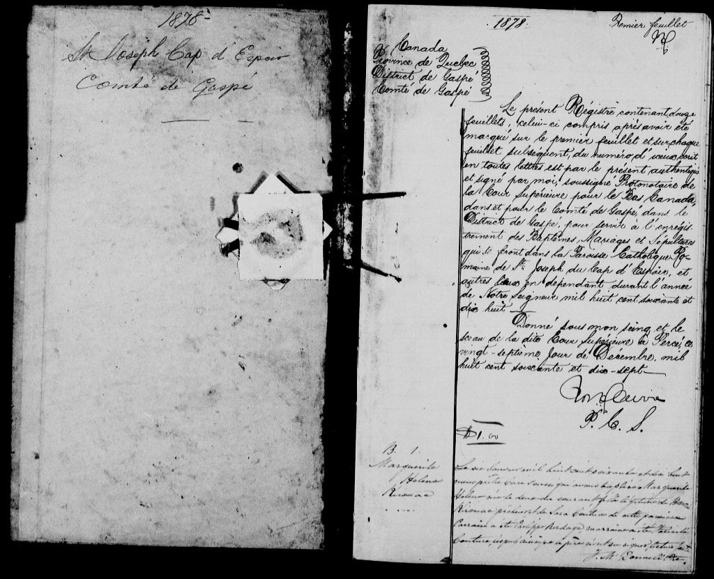Saint-Joseph-de-Cap-d'Espoir, 1867-1921, Archives nationales à Rimouski, Fonds Cour supérieure. District judiciaire de Gaspé. État civil, (01R,CE102,S15).