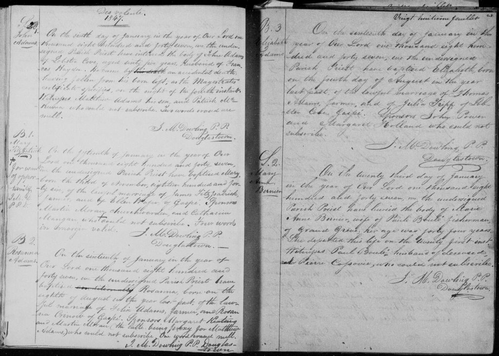 Saint-Patrick-de-Douglastown, 1845-1921, Archives nationales à Rimouski, Fonds Cour supérieure. District judiciaire de Gaspé. État civil, (01R,CE102,S22).
