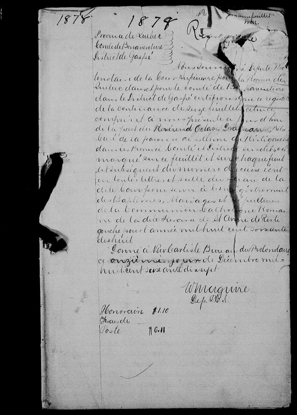 Sainte-Anne-de-Ristigouche, 1842-1921, Archives nationales à Rimouski, Fonds Cour supérieure. District judiciaire de Bonaventure. État civil, (01R,CE103,S15).