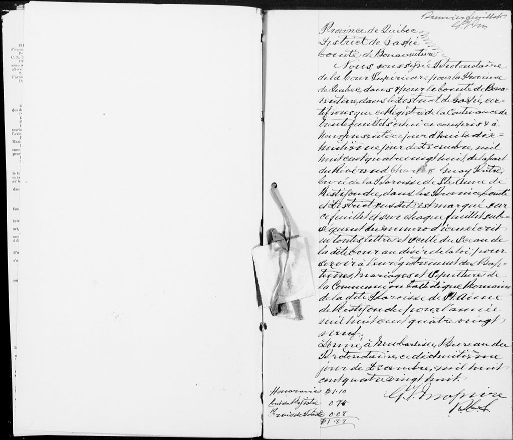Sainte-Anne-de-Ristigouche, 1842-1921, Archives nationales à Rimouski, Fonds Cour supérieure. District judiciaire de Bonaventure. État civil, (01R,CE103,S15).