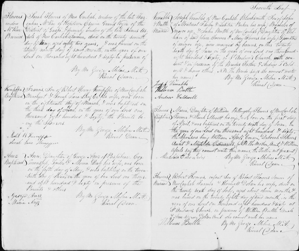St. Andrew's Anglican Church, 1821-1921, Archives nationales à Rimouski, Fonds Cour supérieure. District judiciaire de Bonaventure. État civil, (01R,CE103,S17).