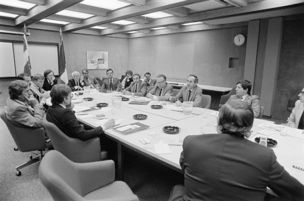 Rencontre de René Lévesque et de Michel Clair, Ministre des Transports avec le Ministre des Transports M. Fiterman, 1982-07-12, Archives nationales à Québec, Fonds Ministère des Communications, (03Q,E10,S44,SS1,D82-381), Marc Lajoie.