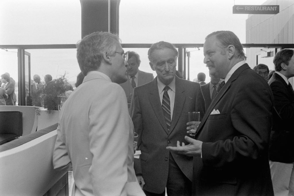 Inauguration du Pavillon du Québec en présence de René Lévesque, Claude Ryan, Jean Drapeau et Jacques-Yvan Morin