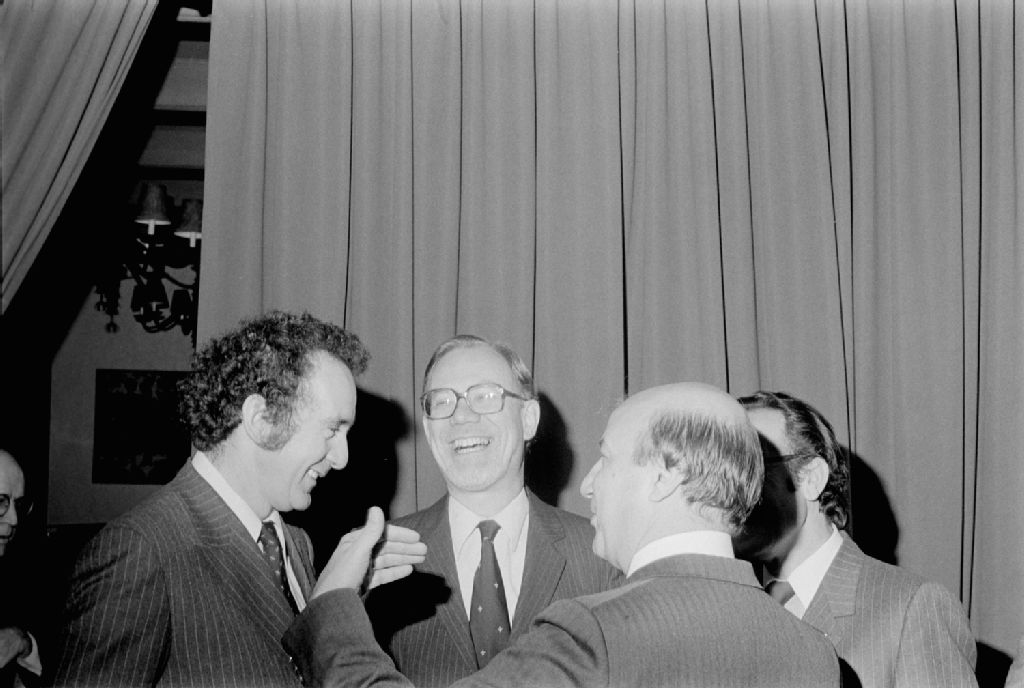 Visite du Ministre de la Grèce, M. Caramenlis, et de René Lévesque, 1982-10-16, Archives nationales à Québec, Fonds Ministère des Communications, (03Q,E10,S44,SS1,D82-643), Henri Rémillard.