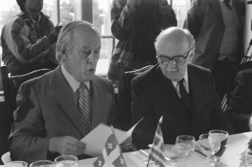 Visite du Ministre de la Grèce, M. Caramenlis, et de René Lévesque