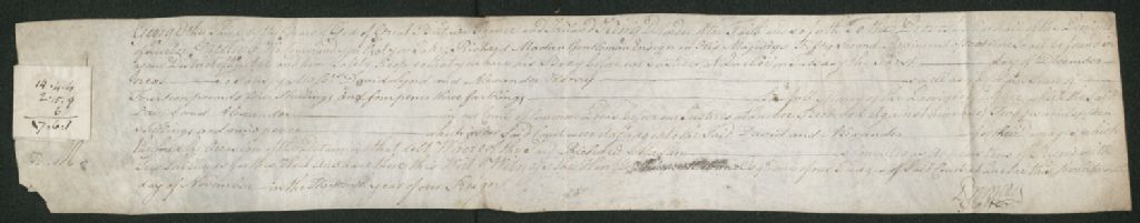 Ce dossier en matières civiles provient de la Cour des plaidoyers communs. Il comprend une requête formulée par Gerald Fitzgerald, avocat de David Lynd et Alexander Henry, réclamant une somme de 11 livres et 17 shillings en argent d'Halifax à Richard Madan pour biens vendus et livrés et impayés (inclus avec la requête est une facture desdits achats de vêtements et accessoires); un mandat d'arrestation pour Richard Madan