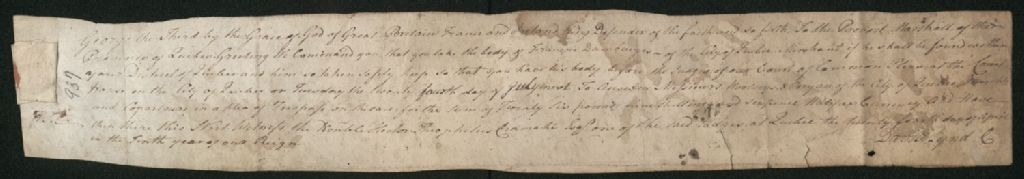 Procès entre les sieurs Woolsey et Bryan, marchands de Québec, d'une part, et François Dambourgés (Dambourgé, Dambourger), d'autre part, à propos de marchandises vendues et impayées, 23 mai 1770, Archives nationales à Québec, Fonds Cour des plaidoyers communs du district de Québec, (03Q,TL24,S1,D937).