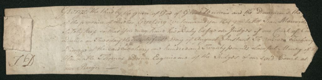 - Procès entre Zachary Macaulay, marchand de la ville de Québec, d'une part, et le sieur Mauvide, d'autre part, à propos de marchandises vendues et impayées