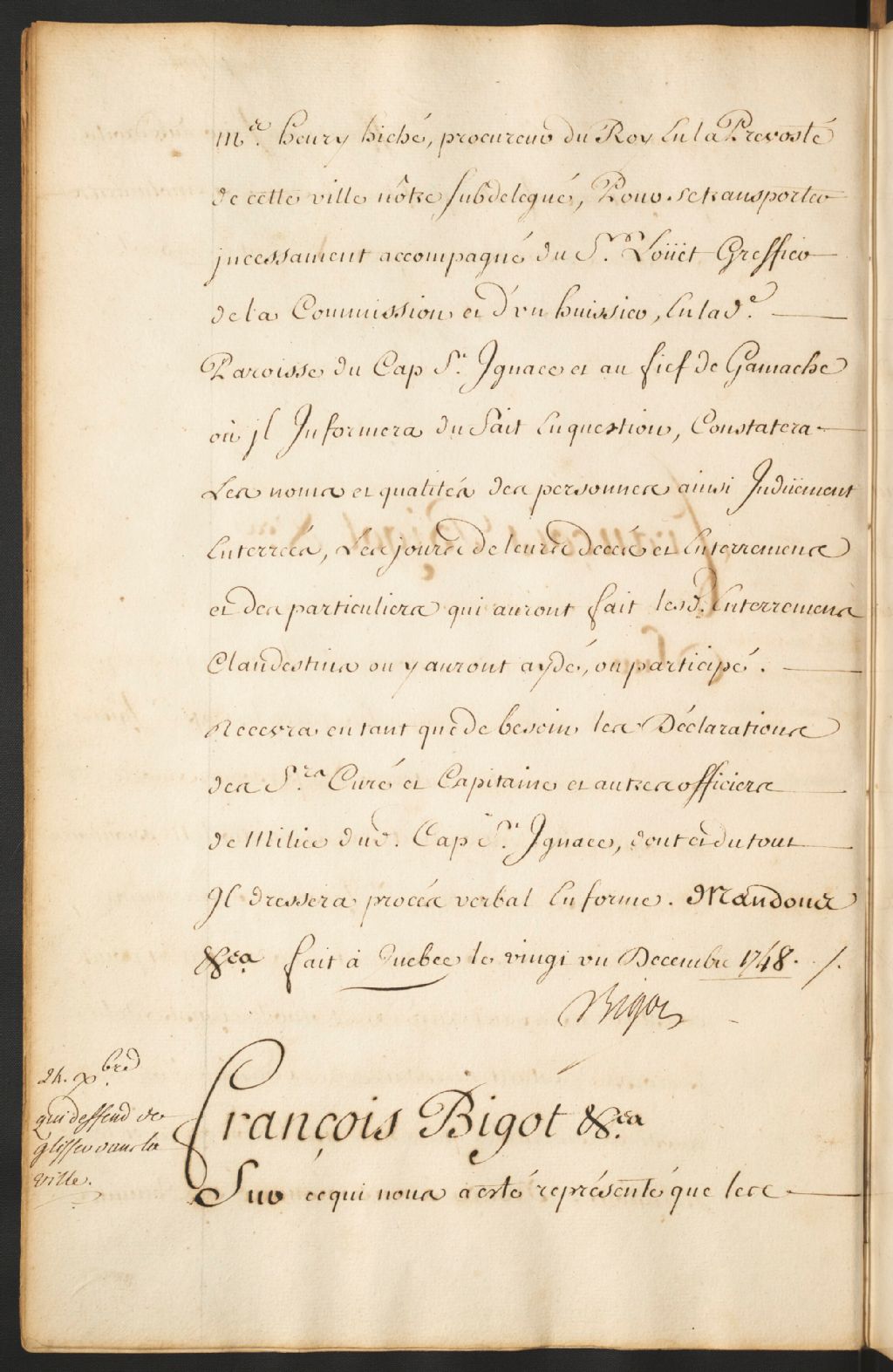 - Cahier 36 : Registre des commissions et ordonnances rendues par Monsieur Bigot, intendant de justice, police, finances et de la marine de la Nouvelle-France.