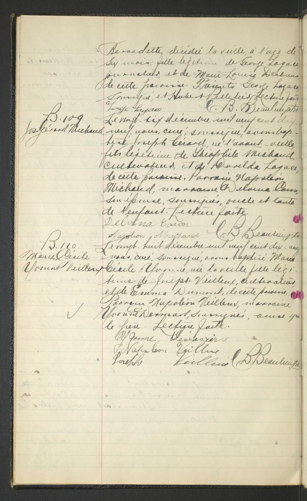Saint-Hubert, 1886-1921, Archives nationales à Rimouski, Fonds Cour supérieure. District judiciaire de Kamouraska. État civil, (01R,CE104,S5).