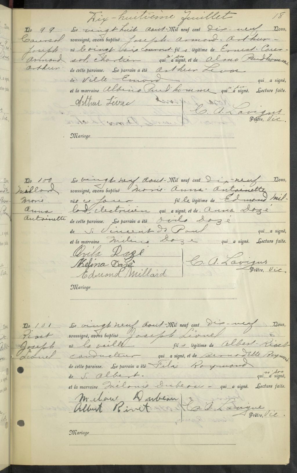 Saint-Étienne, 1912-1921, Archives nationales à Montréal, Fonds Cour supérieure. District judiciaire de Montréal. État civil, (06M,CE601,S318).