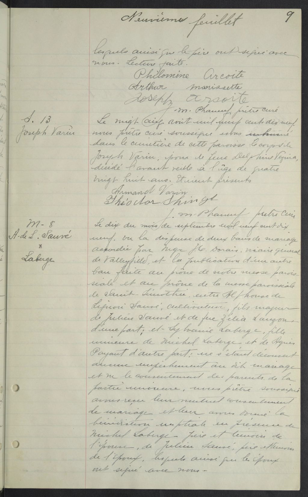 Très-Saint-Sacrement, 1884-1921, Archives nationales à Montréal, Fonds Cour supérieure. District judiciaire de Beauharnois. État civil, (06M,CE607,S26).