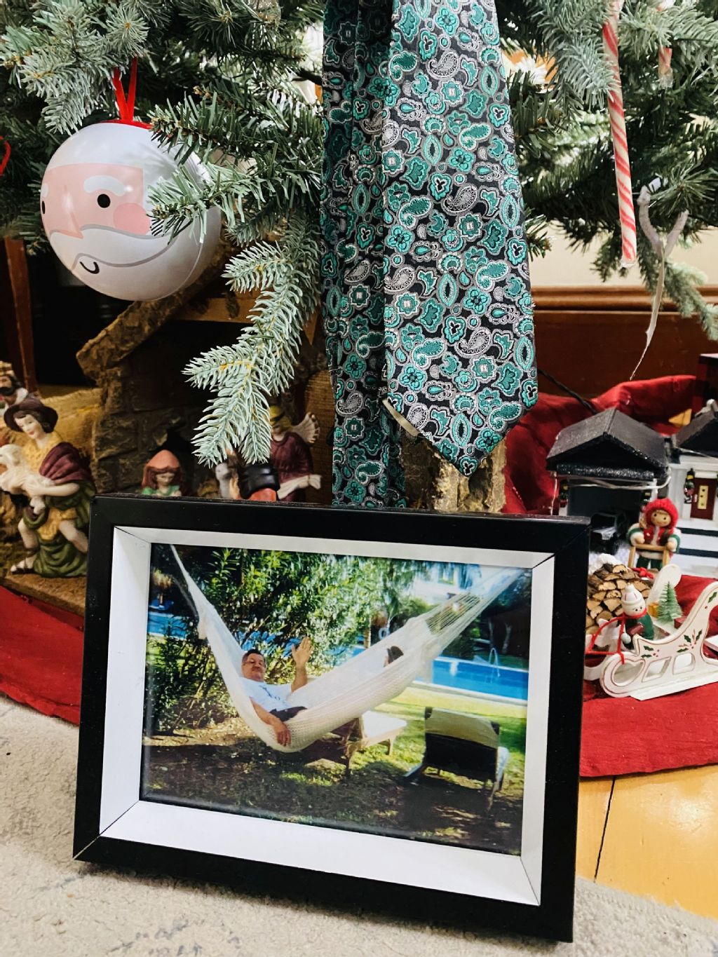 Ce souvenir a été partagé par Josée Castonguay du Nouveau-Brunswick : « Sous l'arbre : la photo de mon papa décédé en 2016 à l'âge de 69 ans, Venant Castonguay. Dans l'arbre : sa cravate, utilisée pour notre tradition. Le matin du 25 décembre, nous cachons dans la maison la cravate de mon papa décédé trop tôt. Le membre de la famille qui la découvre, est celui qui jouera le rôle du lutin distributeur de cadeaux. L'année suivante, cette personne aura la tâche de cacher la cravate à son tour le 25 au matin ! C'est un moyen de garder notre papa/grand-papa vivant en cette période de l'année ! »