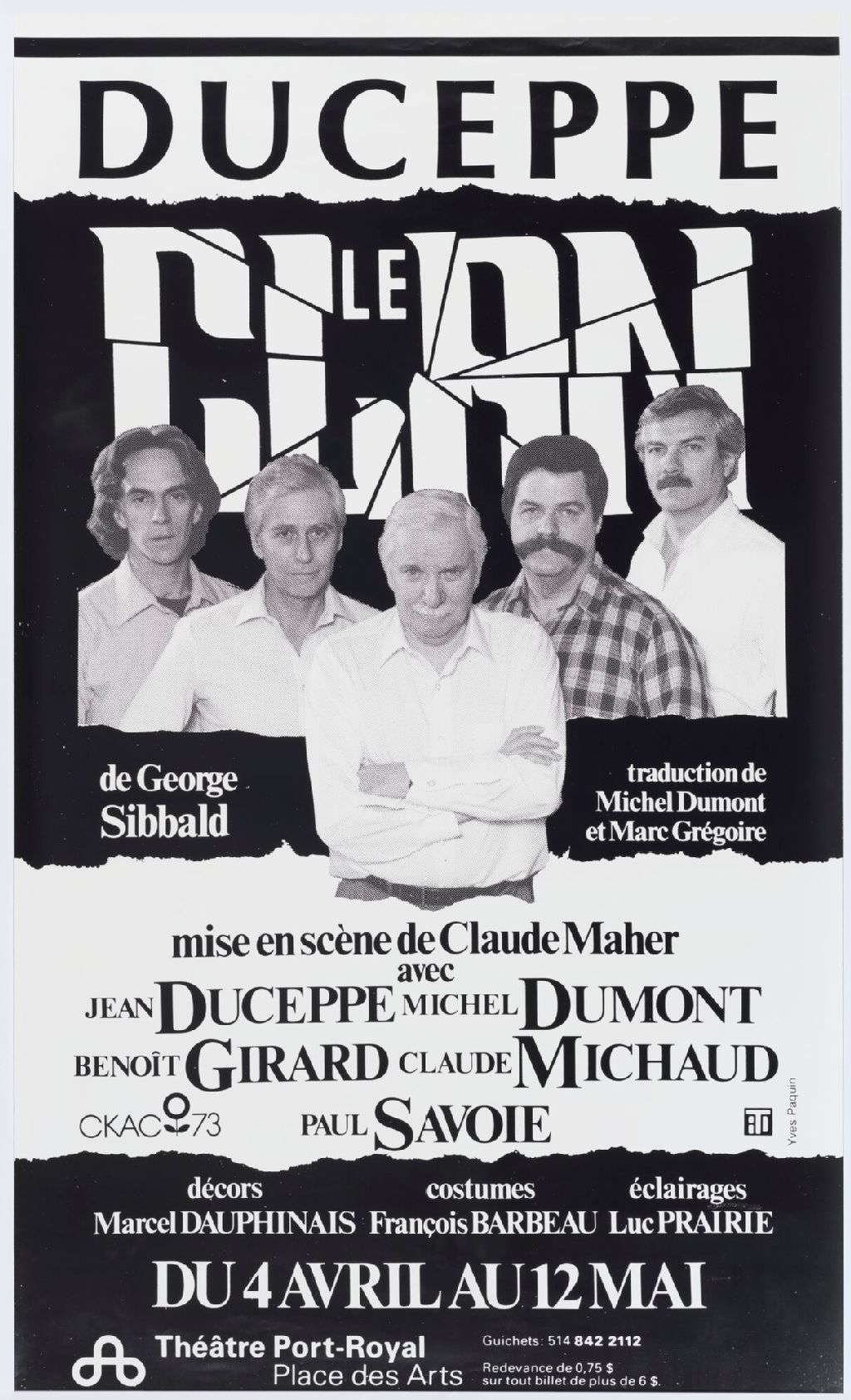 Le clan : de George Sibbald, traduction de Michel Dumont et Marc Grégoire : mise en scène de Claude Maher, avec Jean Duceppe, Michel Dumont, Benoît Girard, Claude Michaud, Paul Savoie ... /