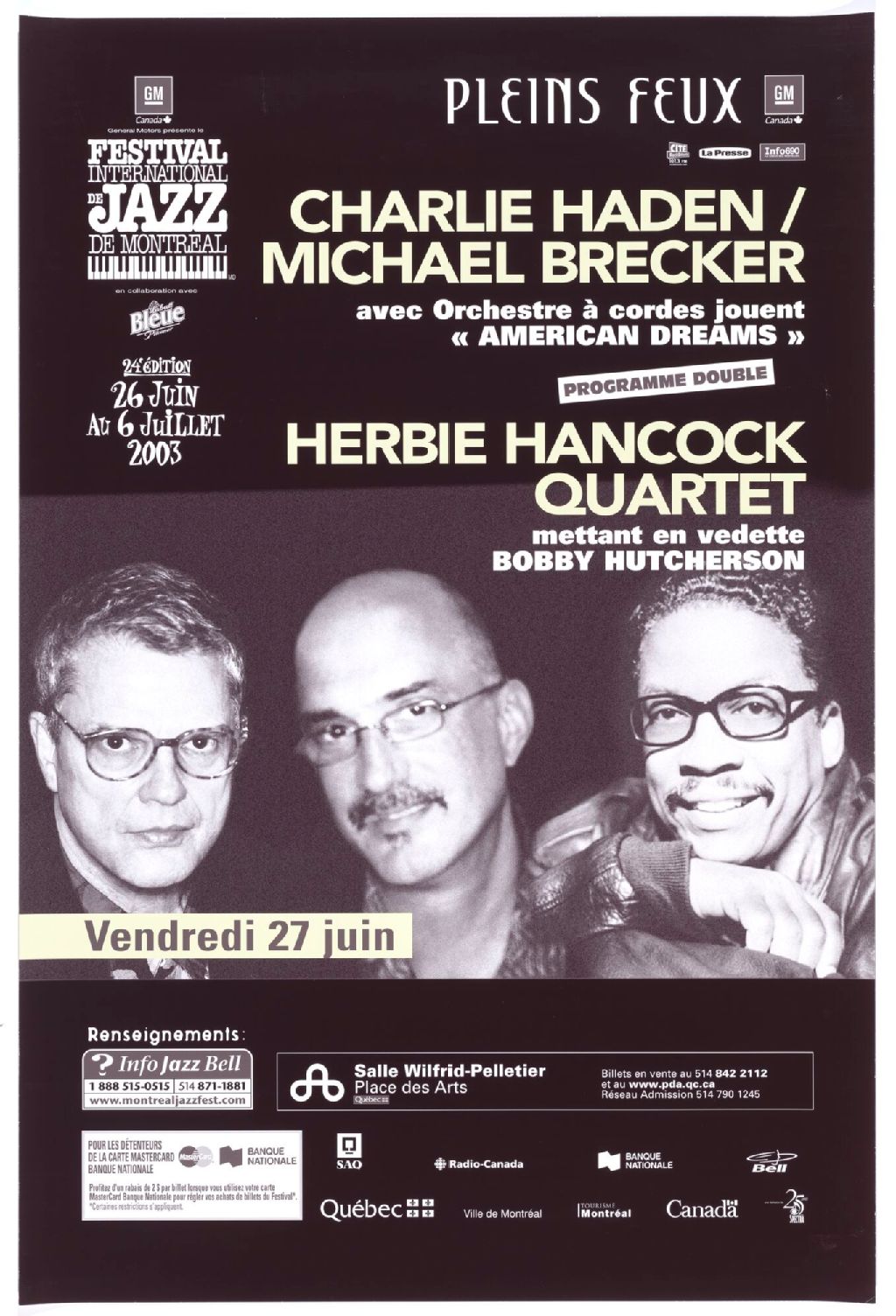 Charlie Haden, Michael Brecker avec orchestre à cordes jouent American dreams [et] Herbie Hancock Quartet mettant en vedette Bobby Hutcherson Pleins feux GM Canada : programme double