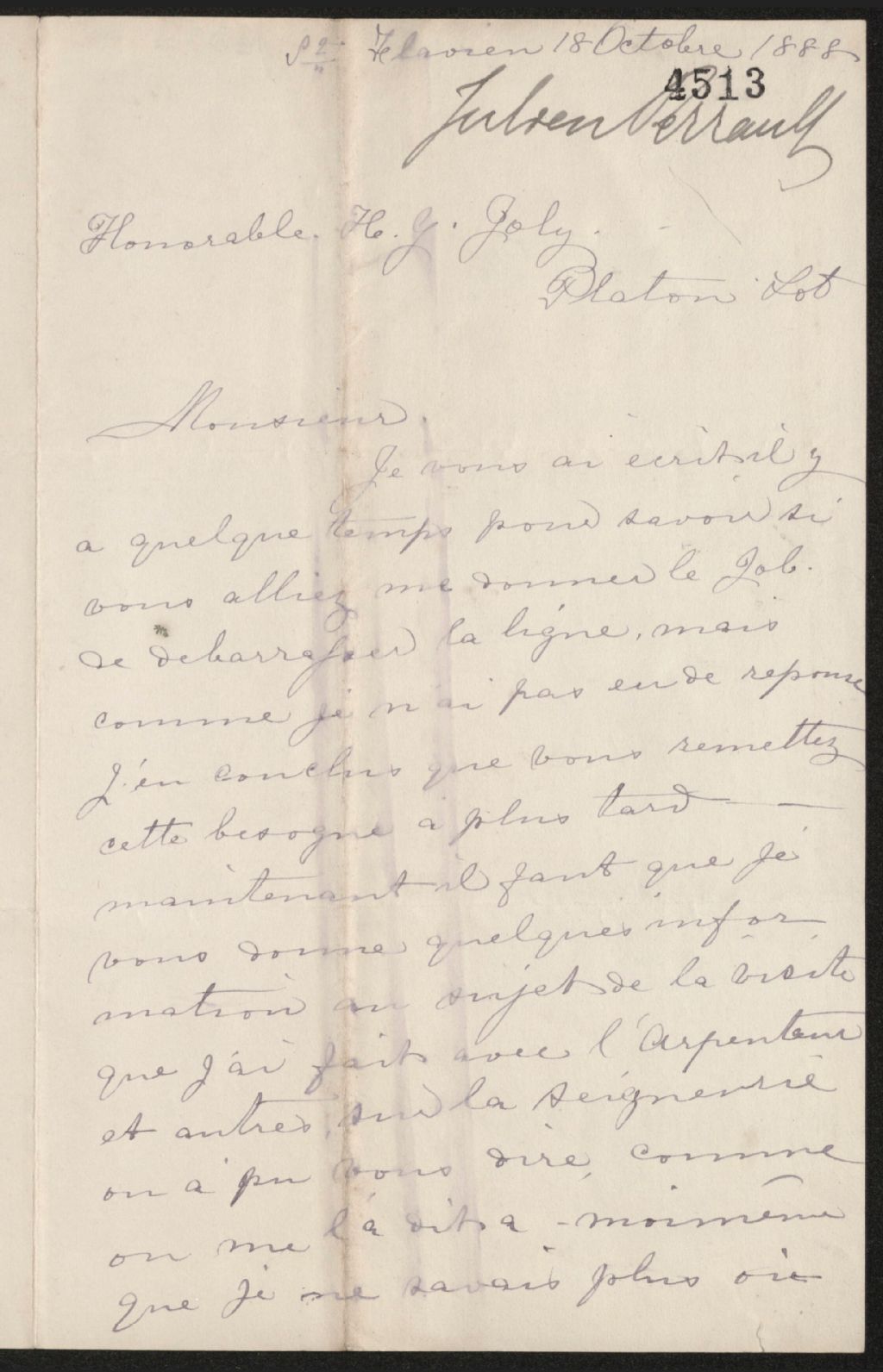 Lettre de Julien Perreault à Henri-Gustave Joly