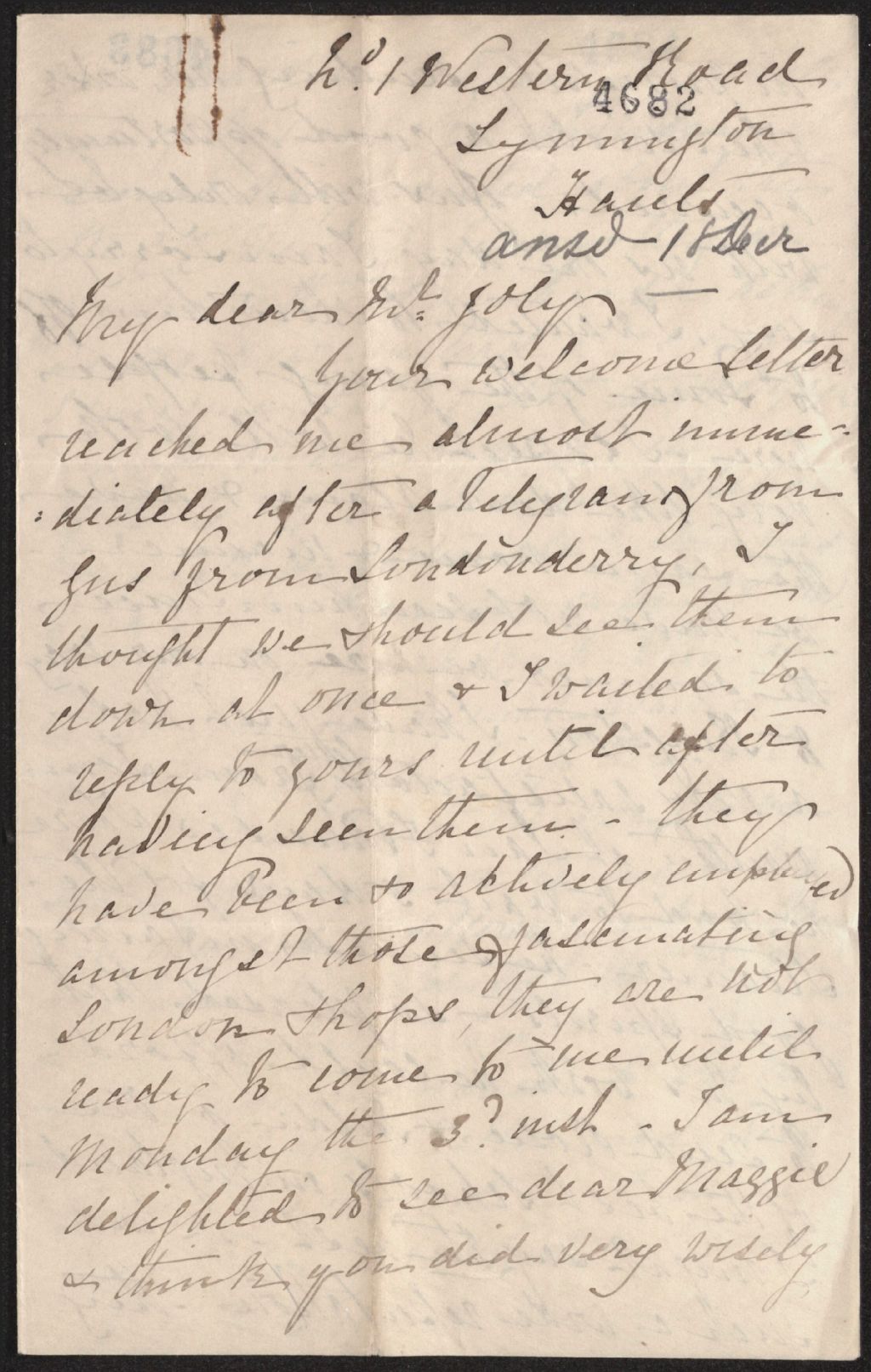 Lettre d'Elinor Bland Strange à Henri-Gustave Joly