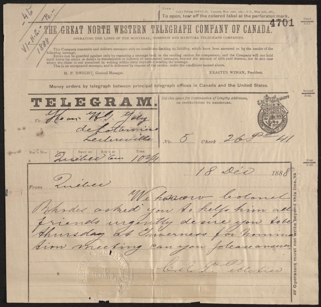 Lettre de C. A. P. Pelletier à Henri-Gustave Joly, 18 décembre 1888, Archives nationales à Québec, Fonds Famille Joly de Lotbinière, (03Q,P351,S4,SS1,P4701).