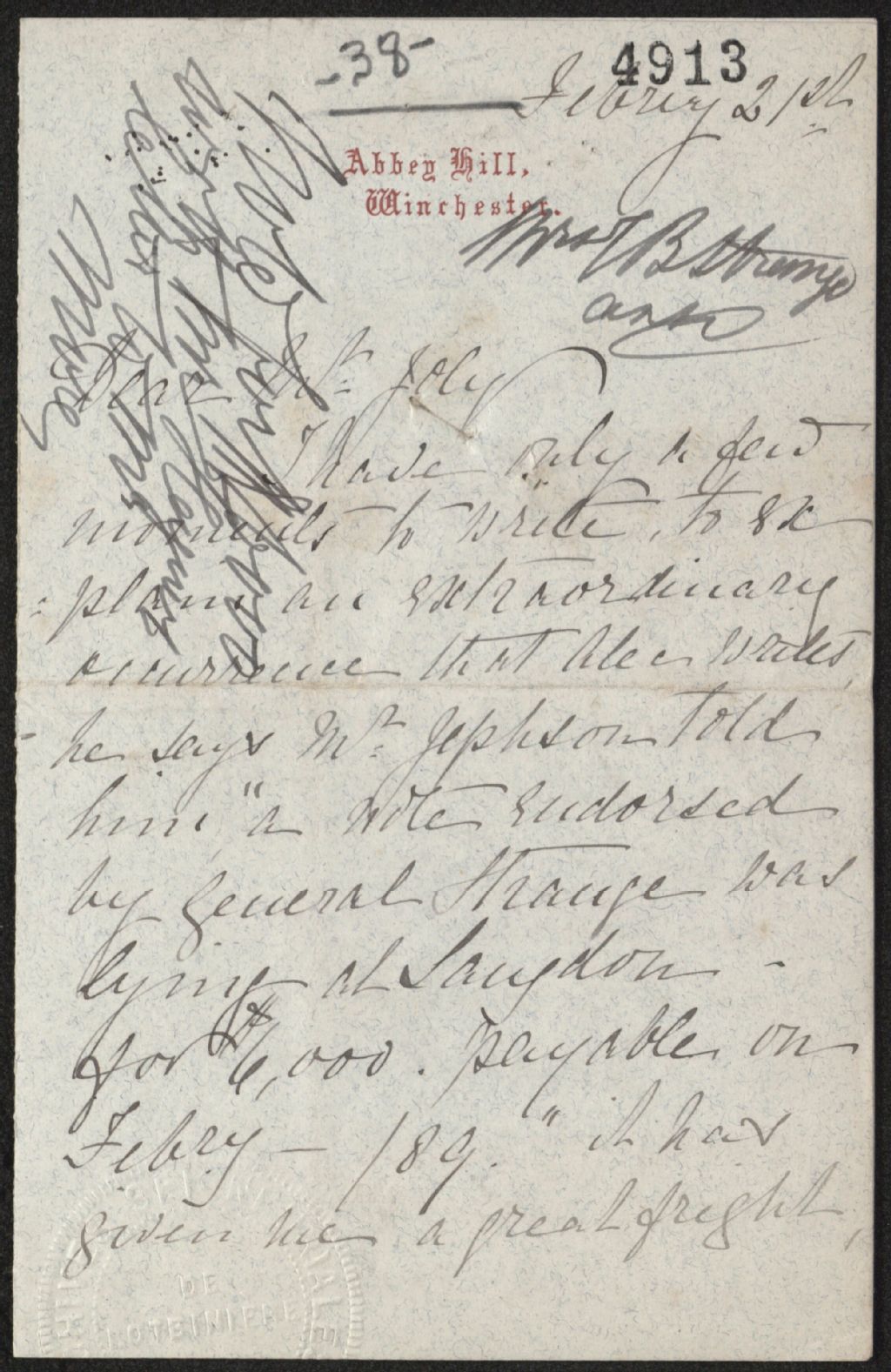 Lettre d'Elinor Bland Strange à Henri-Gustave Joly