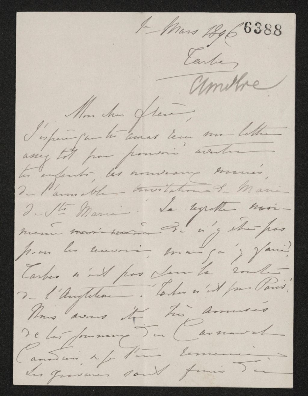 Lettre d'Amélie Savage à son frère Henri-Gustave Joly