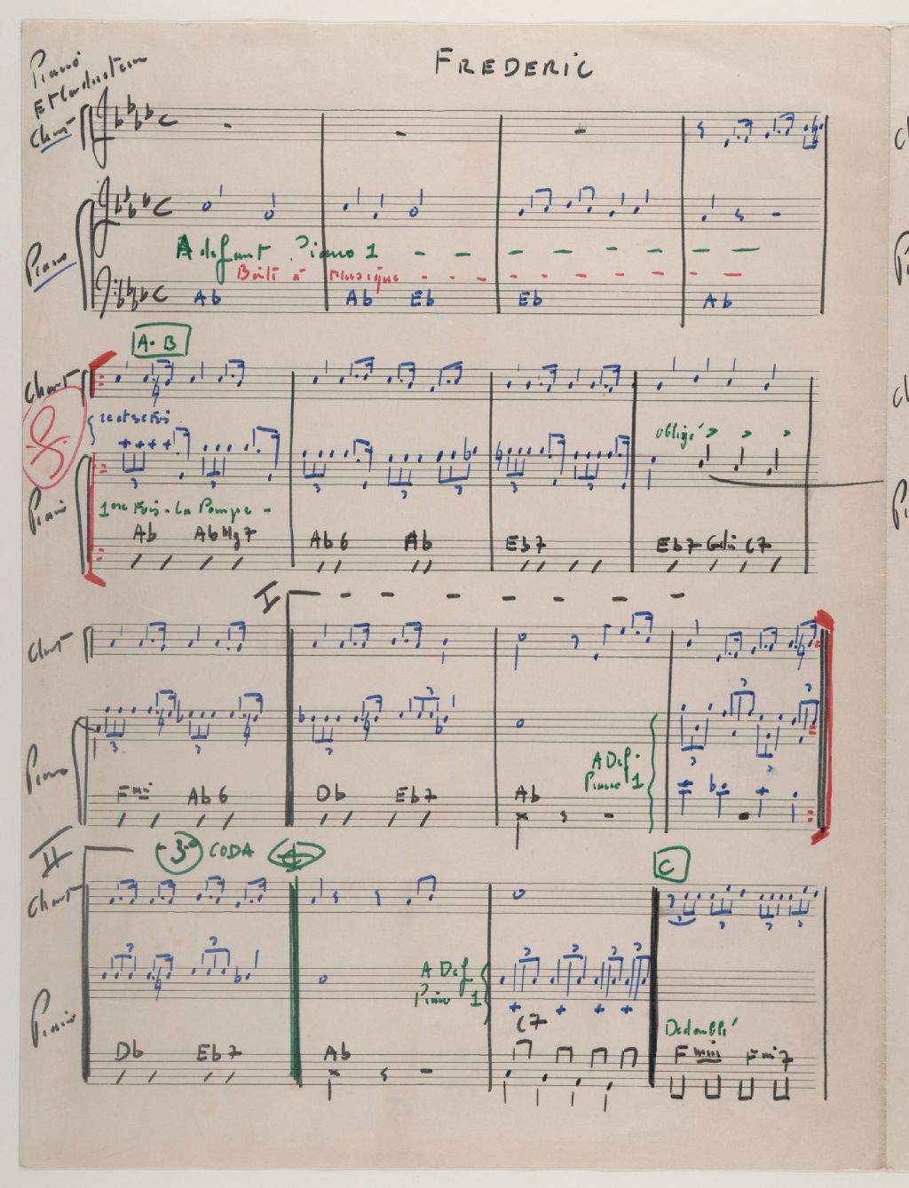 - Ce dossier contient trois versions de la chanson, avec les partitions musicales manuscrites pour piano et instruments à cordes, ainsi qu'une partition d¿orchestre et quelques photocopies de partitions